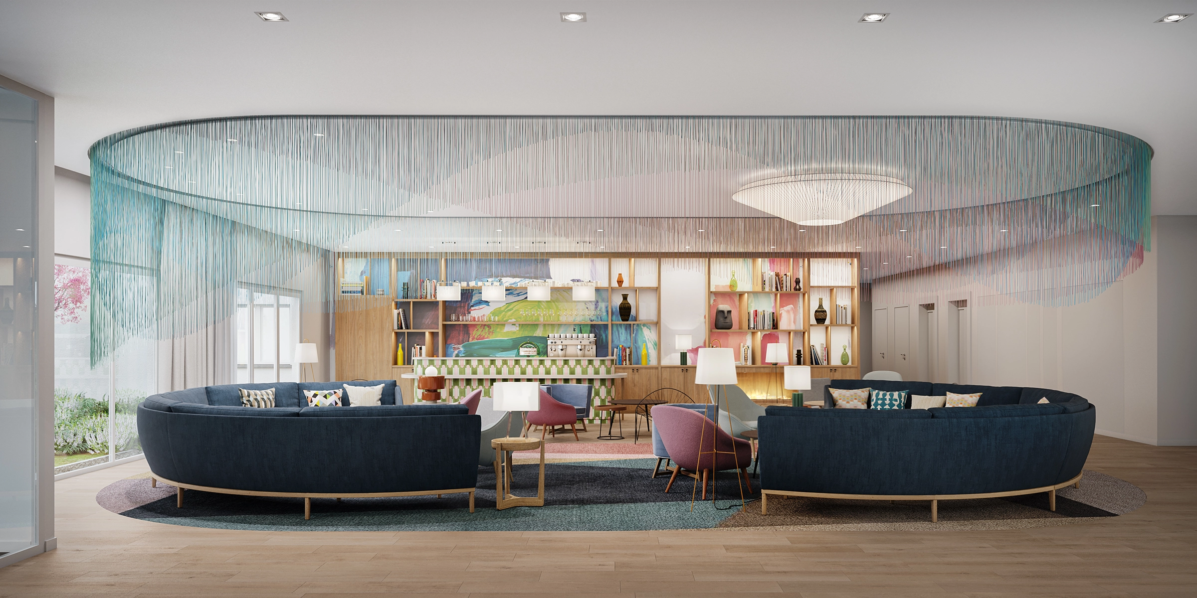 Le projet est placé dans son environnement. Vous vous imprégnez de l’ambiance à travers la palette de couleurs, l’éclairage, la texture des matériaux … L’intérieur comme l’extérieur sont habillés et les personnages animent le visuel.